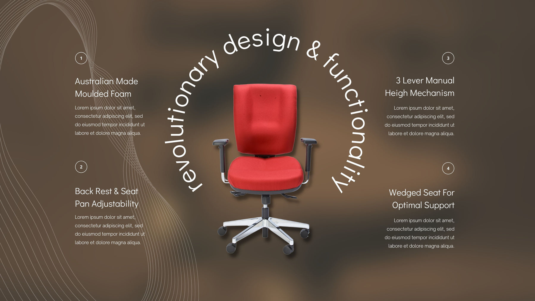 The Executive Bionomic chair features our patented Bionomic seat, a deluxe 5-star base and an Australian made heavy duty mechanism.